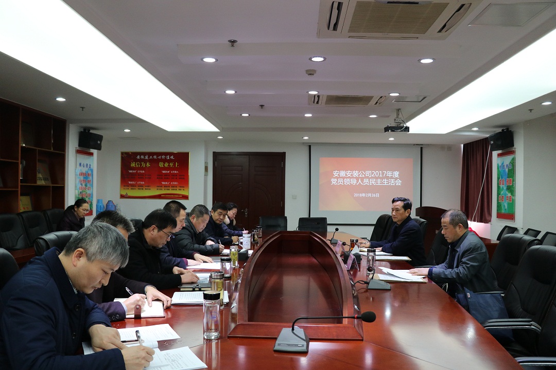 2月26日,安徽安裝公司召開2017年度黨員領(lǐng)導(dǎo)人員民主生活會。集團公司黨委副書記牛曙東、黨委工作部主任徐文聯(lián)到會指導(dǎo)。會議由公司黨委書記、副總經(jīng)理胡六中主持,公司領(lǐng)導(dǎo)班子成員參加會議。