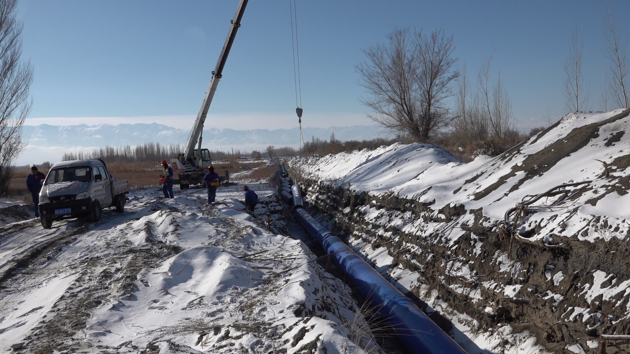 中水回用工程是在野外長距離作業(yè),管道沿途需要穿過高速、省道、鐵路、亞歐光纜及眾多鄉(xiāng)村道路和田間陰溝,施工區(qū)域內有農(nóng)田、戈壁、沙漠,沼澤等,自然環(huán)境極其惡劣,施工地質極為復雜。尤其在步入11月,新疆烏蘇市正式進入寒冬季節(jié),期間平均氣溫都在零下十度以下,并時常飛舞著雪花,由于晝夜溫差大,夜間項目上的氣溫更是達到零下二三十度,這給項目部施工帶來了嚴重挑戰(zhàn),但項目部員工沒有被惡劣的環(huán)境所嚇倒,他們“逢山開路、遇水搭橋”,努力克服各方面不利因素,合理安排施工進度計劃。全體職工發(fā)揚安徽建工人“特別能吃苦,特別能戰(zhàn)斗”的企業(yè)作風,在公司“大干60天”勞動競賽的正向激勵下,不畏環(huán)境艱苦,抓質量,保安全,戰(zhàn)荒漠,斗嚴寒,每天堅持戰(zhàn)斗在生產(chǎn)第一線,哪里有施工,哪里就有管理人員的堅定身影。