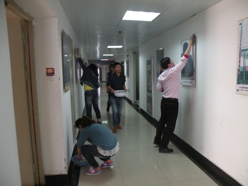 331日下午,公司團(tuán)委組織機(jī)關(guān)團(tuán)員開(kāi)展義務(wù)勞動(dòng),對(duì)公司所在九華國(guó)際大廈1516樓走廊兩側(cè)的宣傳圖畫(huà)、宣傳欄以及消防櫥窗進(jìn)行徹底擦洗。擦洗走廊兩側(cè)一幅幅精品工程,感知著公司發(fā)展歷程,“小伙伴們”心中油然而生“我為省安人而驕傲”!
