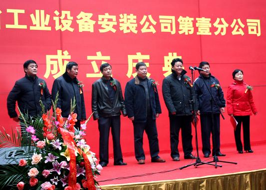2010年元月10日,萬物萌生,瑞雪飄揚。經(jīng)過長時間的醞釀和籌備,安徽省工業(yè)設(shè)備安裝公司第壹分公司終于揭牌成立。公司總經(jīng)理王軍邦、黨委書記戴樹明攜公司黨政領(lǐng)導集體、合肥地區(qū)項目經(jīng)理、分公司經(jīng)理、機關(guān)部門負責人出席慶典,戴樹明書記主持儀式。