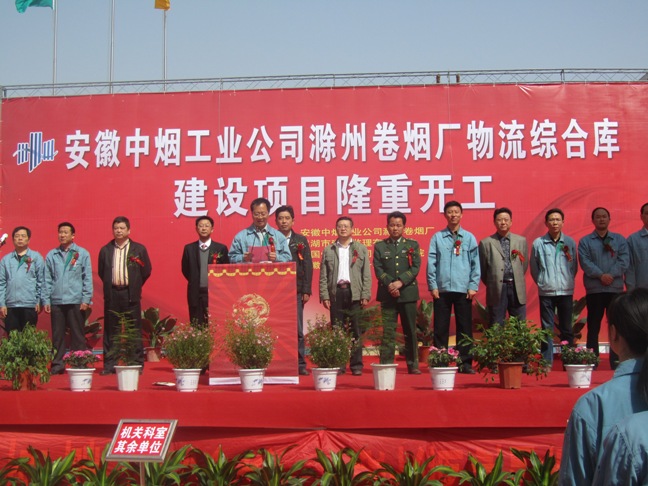 4月18日上午,陽(yáng)光明媚。由公司滁州分公司承建的滁州卷煙廠物流綜合庫(kù)工程開工典禮隆重舉行。滁州卷煙廠主要領(lǐng)導(dǎo)及當(dāng)?shù)刂鞴懿块T負(fù)責(zé)人蒞臨現(xiàn)場(chǎng),公司總經(jīng)理王軍邦、黨委書記戴樹明應(yīng)邀出席儀式,滁州分公司全體管理人員出席慶典,戴書記代表施工單位祝賀工程隆重開工。滁州卷煙廠物流工程的順利開工,標(biāo)志著公司與安徽中煙的良好合作關(guān)系得到進(jìn)一步延續(xù)和鞏固。